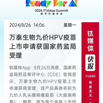【#万泰生物九价HPV疫苗上市申请获国家药监局受理#】 钛媒体App